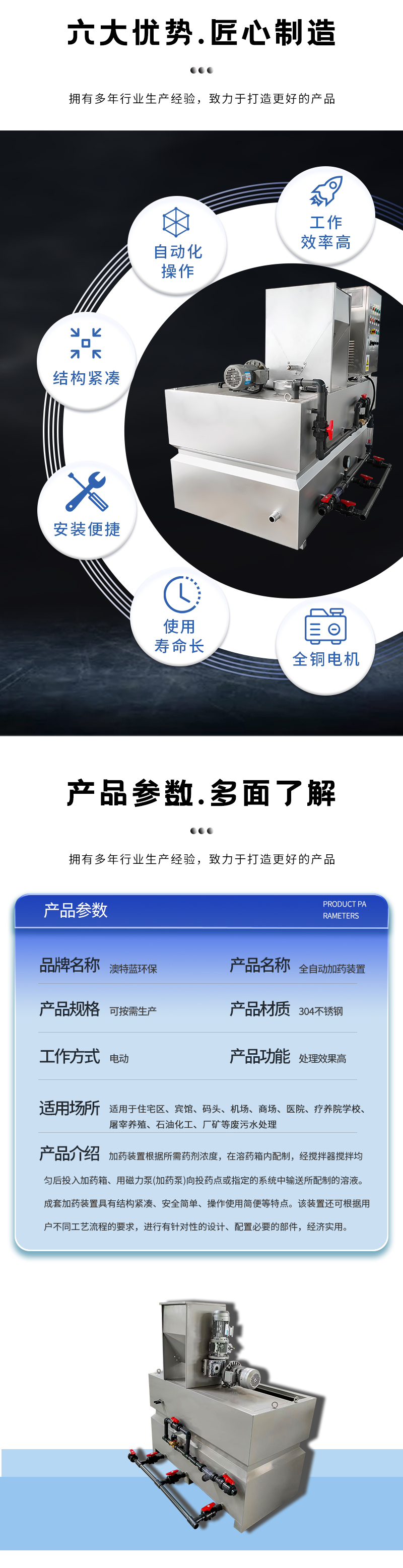 自動加藥裝置是我司主營產(chǎn)品。在給水、排水處理過程中,常投加各類化學(xué)藥劑作為阻垢殺菌滅藻、混凝、絮凝用,以達到凈化水的目的。這些藥劑有固體顆粒、液體,在投加過程中必須溶解、稀釋及按配比定量投加方能取得較佳效果,所以加藥裝置是一種集投藥、攪拌、輸送液體、自動控制于一體的成套設(shè)備。一般用于需要投加緩蝕劑、阻垢劑、殺菌劑的循環(huán)水系統(tǒng),進行水質(zhì)處理藥劑的準確投加與計量。廣泛應(yīng)用于空調(diào)循環(huán)冷卻水、中水回用系統(tǒng)、廢水系統(tǒng)、鋼鐵、石化、火電、造紙、微電子、醫(yī)藥等行業(yè)的工藝循環(huán)冷卻水系統(tǒng)。