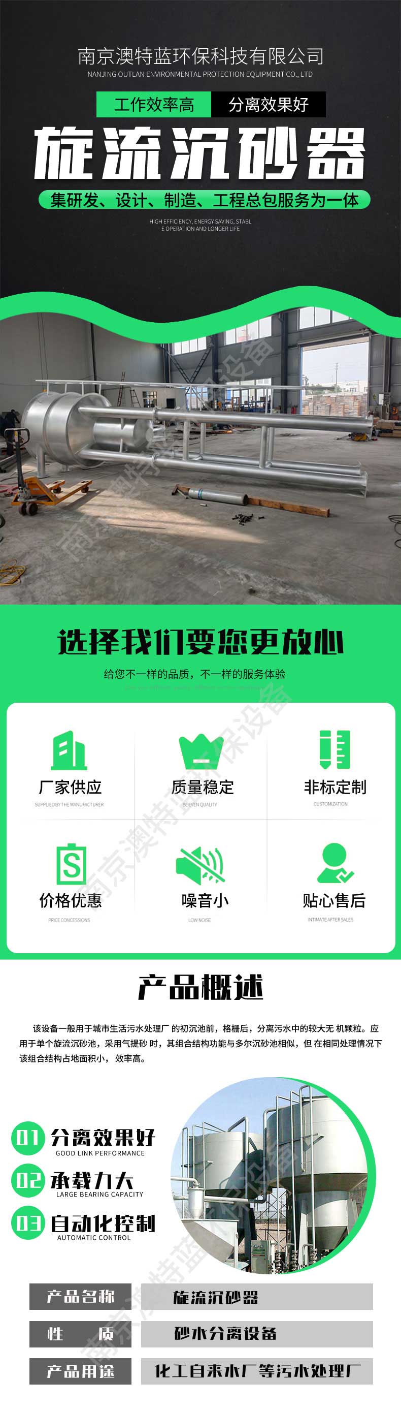 1.該設(shè)備一般用于城市生活污水處理廠的初沉池前,格柵后,分離污水中的較大無(wú)機(jī)顆粒(一般直徑大于0.5mm)。大部分采用空氣提砂,若采用砂泵提砂時(shí)一般對(duì)磨損要求較高。鋼制池體適用中小型流量使用。2.應(yīng)用于單個(gè)旋流沉砂池,采用氣提砂時(shí),其組合結(jié)構(gòu)功能與多與沉砂池相似,但在相同處理情況下該組合結(jié)構(gòu)占地面積小,效率高。